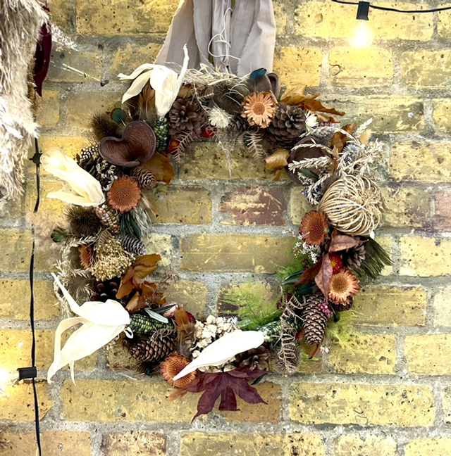 large dried autumnal wreath